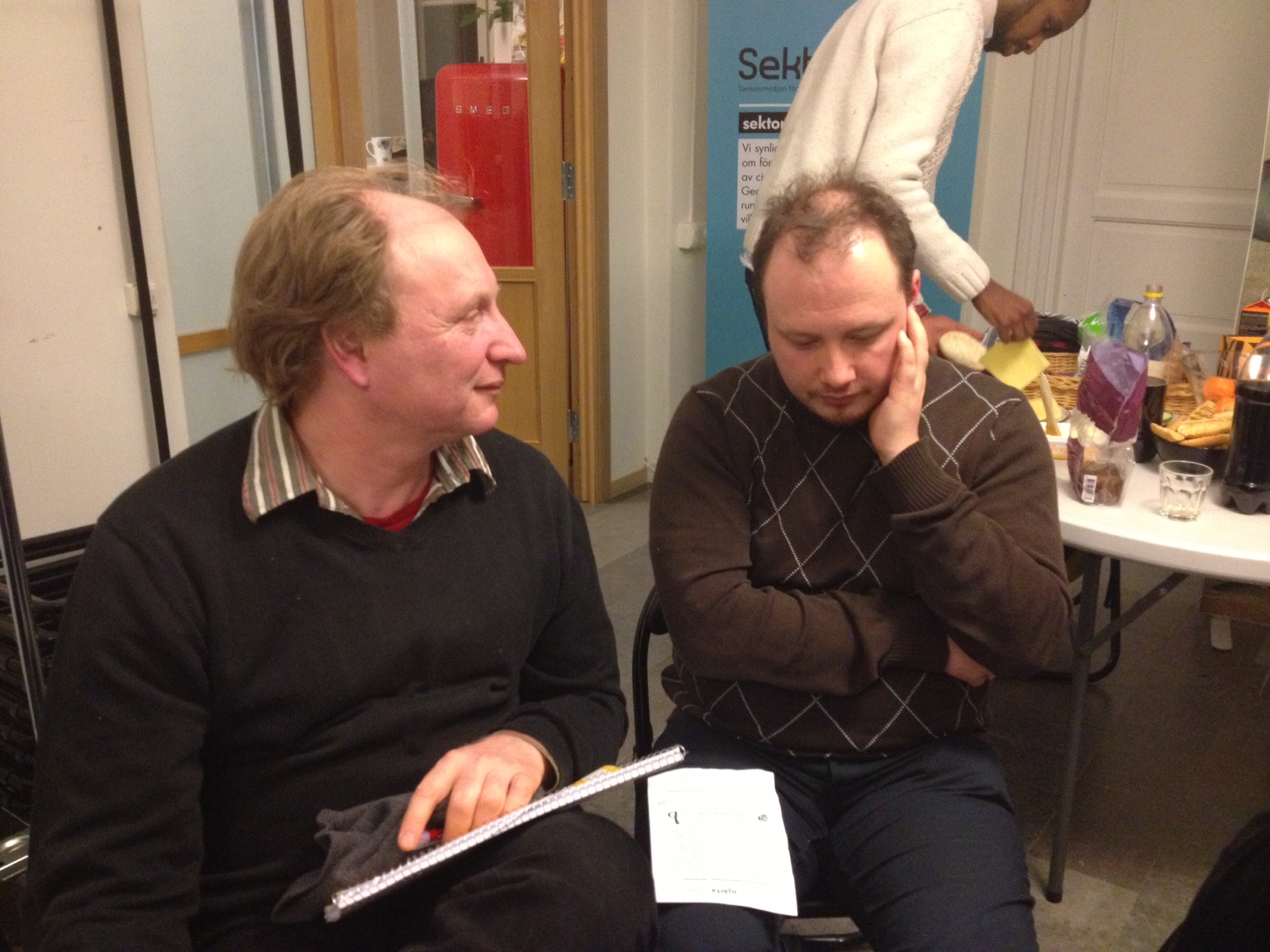 Daniel – nyvald kontaktpersson för Hjärta Sydöst i samspråk med Carl från F! som besökte oss.